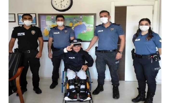 Aydın'ın Didim ilçesinde yürüme engelli Okan Akay'ın polis olma hayali gerçek oldu.