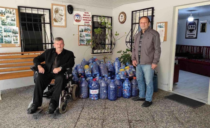 Bursa'nın Kestel ilçesinde yaşayan 63 yaşındaki Hasan Taş, satışından elde edilecek gelirle engellilerin tekerlekli sandalye ihtiyacının karşılanması için 6 ayda 100 bin mavi kapak toplayarak Engelliler Derneğine teslim etti.