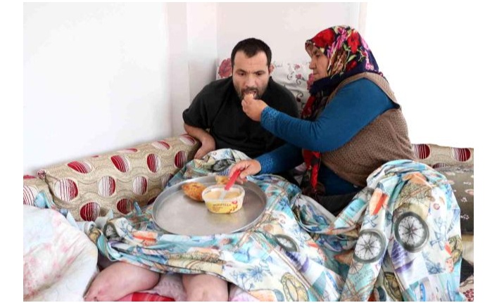 11 yıldır çocuklarını sırtında taşıyan ve 8 kez de bel fıtığı ameliyatı olan anne Mürşide Yalnız da, "Çocuklarıma evde bakıyoruz. Ayrı ayrı yemeklerini yediriyoruz. Çaylarını içiriyoruz, sularını veriyoruz yatırıyoruz. Zorlanıyoruz ama mecbur evladımız ölünceye kadar bakacağım. Belki de çocuklarımın sayesinde yaşıyorum, 8 kere bel fıtığından ameliyat oldum. Çocuklarımıza sevgiyle bakıyoruz, onlar hastaneye gidince gözümüz arkada kalıyor, gelene kadar bekliyoruz. 4'ünü de birbirinden ayırt etmiyoruz, severek bakıyoruz, canımız onlar. Birinin bir yeri ağrıyınca sabaha kadar uyumuyoruz. Yaradanın bir imtihanı, böylece hayat geçiyor" şeklinde konuştu. - YOZGAT
